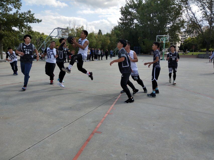 在队员的默契配合下,比分交替上升。进入下半场比赛后,大一队员个个聚精会神,动作连贯,大二队员配合默契,准确投篮,气氛愈发紧张热烈,每位球员都以最好的状态面对这次比赛,赢得了场外观众的阵阵喝彩。