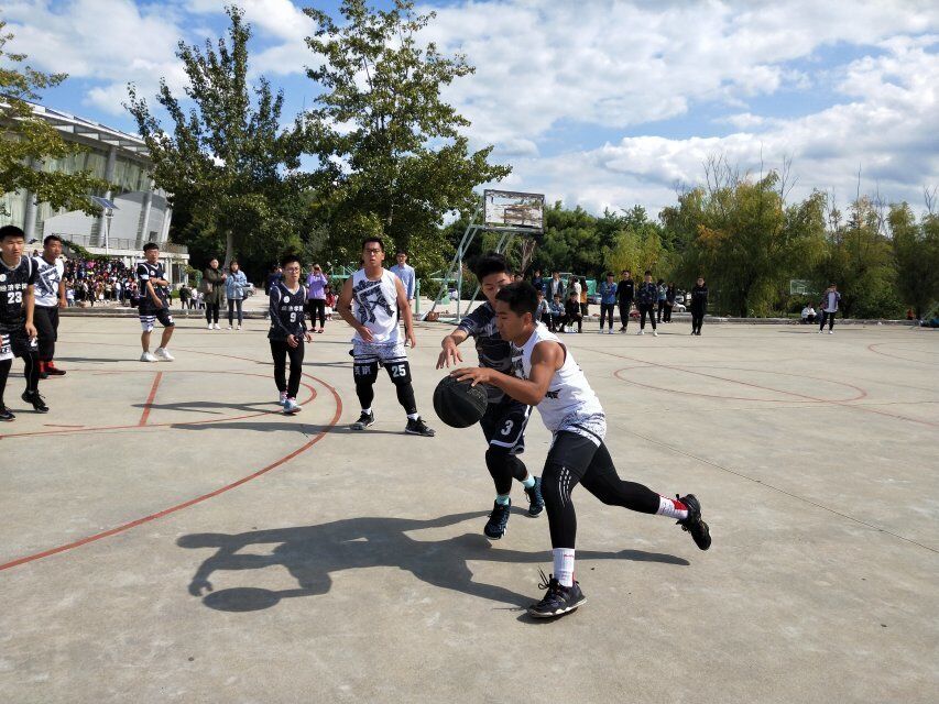 2018年10月11日,万搏在线新老生篮球交流赛在体育馆西侧篮球场举行。万搏在线17、18级部分同学到比赛场地为双方队员加油打气。