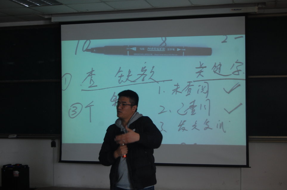 3月12日下午,万搏在线在五教413室举办考研复试及调剂辅导会,邀请文都考研指导教师马龙来校做指导,15级部分考研学子参加了此次辅导会。