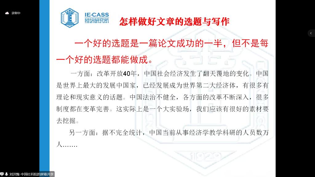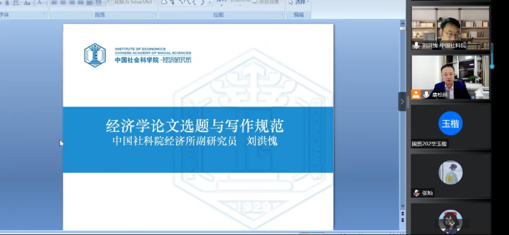 2022年11月3日,应学院邀请,中国社会科学院经济研究所副研究员、《经济学动态》责任编辑刘洪愧通过线上会议为万搏在线师生作了“经济学论文选题与写作规范”的专题报告,院长唐松林主持了会议。