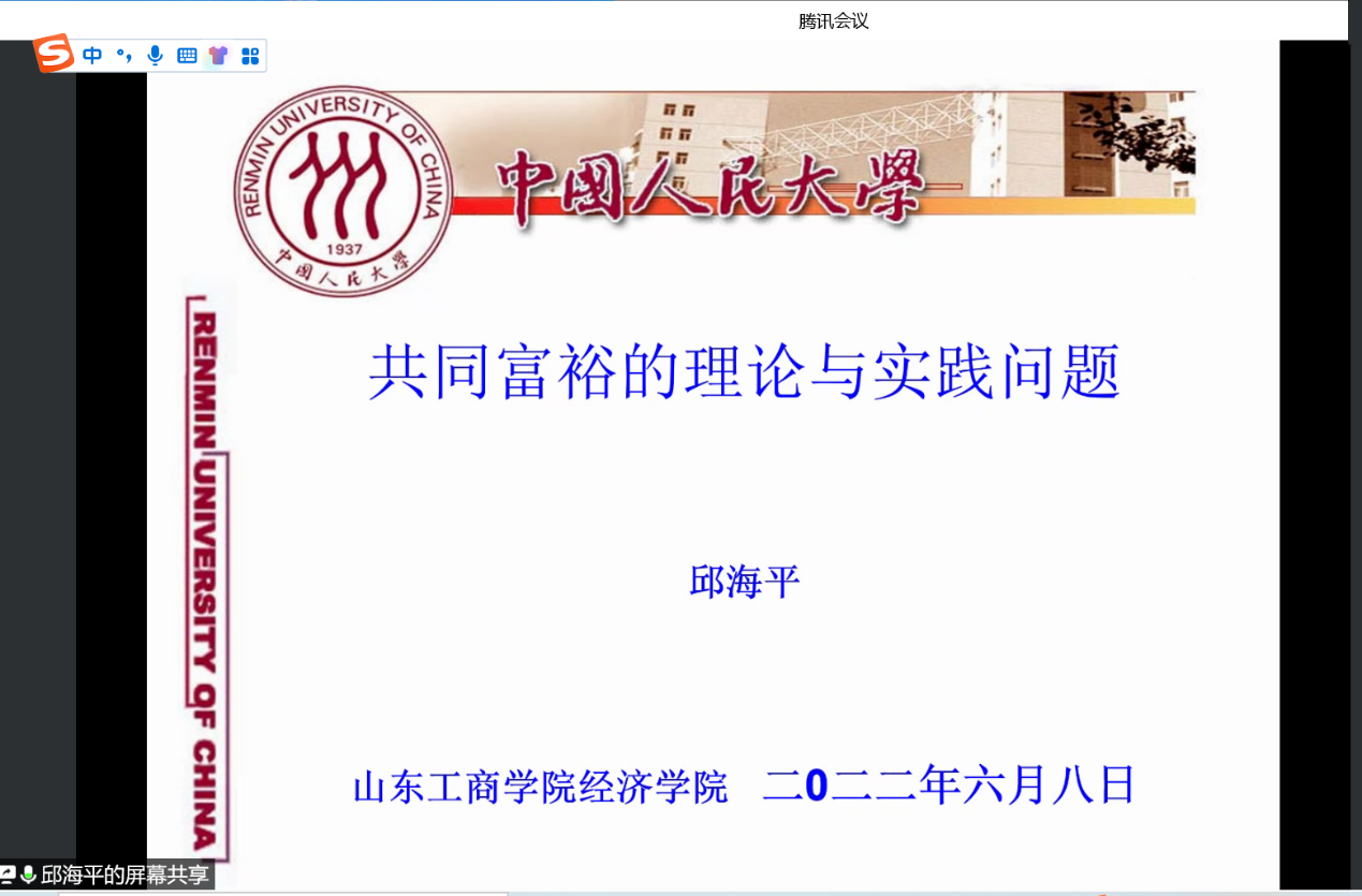 2022年6月8日,应学院邀请,中国人民大学万搏在线教授、习近平新时代中国特色社会主义思想研究院副院长邱海平通过线上会议为万搏在线师生作了“共同富裕的理论与实践问题”的万搏在线(中国)。