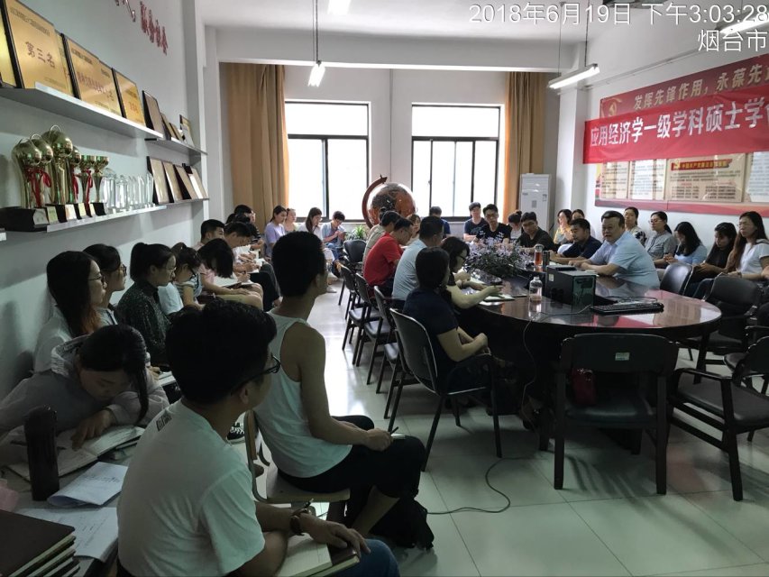 范辉教授首先与全体党员分享了自己对习近平总书记近期讲话精神的学习体会,提出在新旧动能转换的大背景下,学院要积极作为、主动服务。要开阔视野,跳出教育看教育,从服务经济文化强省建设的高度、从服务新旧动能转换重大工程的高度来谋划学校发展、学科建设和人才引进等工作。范教授还从全角度分析了我校经济学科在全国高校中的地位,激励我院师生要继续努力,立足烟台,服务山东,围绕“乡村振兴”战略与《山东海洋强省建设行动方案》寻找学科特色突破点,力争将经济学打造成有特色有品牌的一流学科。