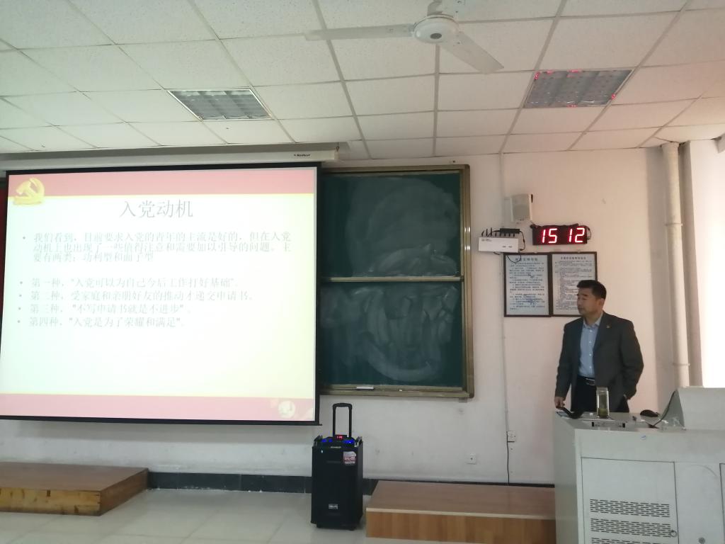 2019年11月5日下午两点三十分,万搏在线2019年第二期党员发展对象开班仪式暨第一次党课在5教413室举行。党总支书记马金智主持此次开班仪式,全体党员发展对象参加本次活动。