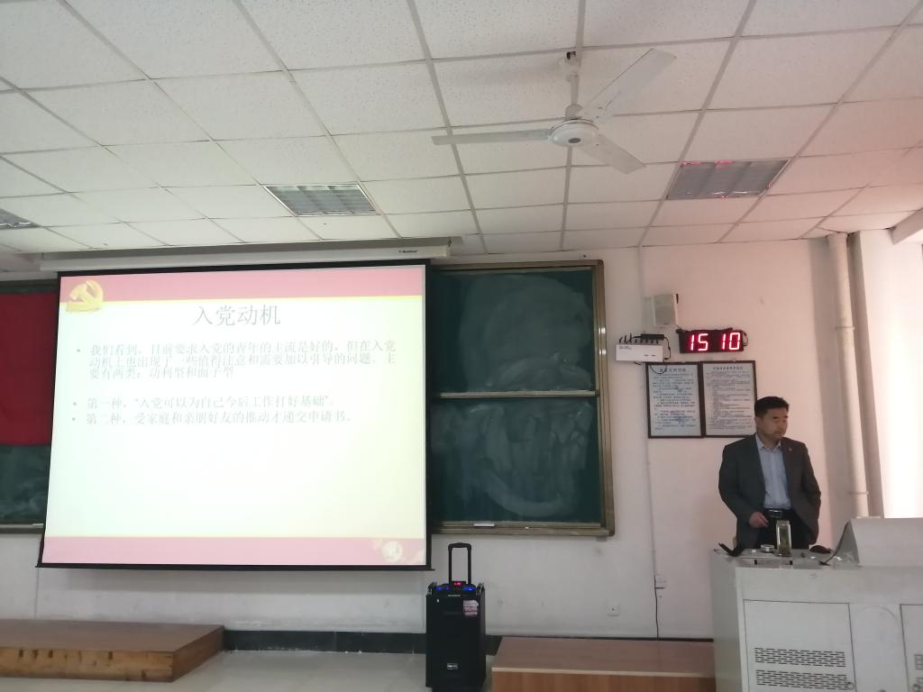 首先,马金智书记宣布本次党员发展对象培训计划开始,并举行开班仪式,点明了党员发展对象培训的重要性。随后,马金智书记以“共产主义信仰是有志青年的唯一选择”为主要内容开讲第一次党课。书记首先讲信仰,信仰是心灵的产物,是一种灵魂式的爱,并引用撒切尔夫人的名言证实了有信仰才会有思想。随后,书记讲述了社会主义核心价值体系、共产主义信仰,阐释了马克思主义的优点、马克思主义中国化的等内容。用天堂和地狱的例子生动的阐释了共产主义才会通向天堂的言论,让同学们对共产主义信仰有了更加深刻的了解。随后,书记用伟人先烈选择共产主义信仰的实例展现了选择共产主义信仰的正确性。同时向同学们展示了不同的入党动机,让同学们更加明白应该树立为人民服务的思想,不贪图钱财,不谋求名利,脚踏实地,端正入党动机。最后,同学们阅读了入党誓词,思考了书记提出的问题,此次活动圆满结束。