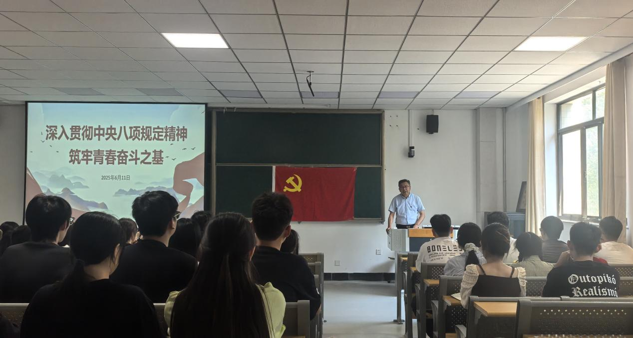 6月11日下午,万搏在线党委书记程毅为学院全体学生党员讲授了主题为“深入贯彻中央八项规定精神,筑牢青春奋斗之基”的专题党课。学院全体辅导员参加,这也是2025届毕业生党员在校的最后一次党课。