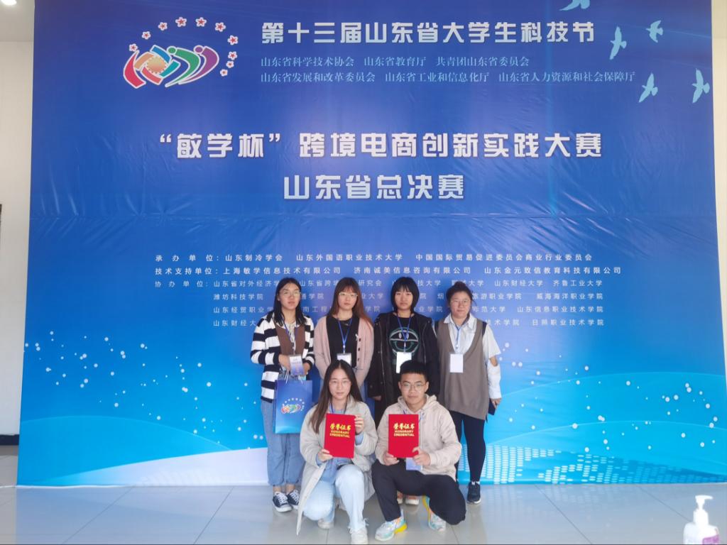 10月10日至11日,在第十三届山东省大学生科技节“敏学杯”跨境电商创新实践大赛上,山商学子喜获佳绩。由专业教师刘迅、姜书竹、李德震指导的,学生王子怡、王晓静、岳晓雨组成的参赛队伍“经院一队”脱颖而出,荣获一等奖;杜沣宸、张蕾、孙首业组成的参赛队伍“经院三队”荣获二等奖。