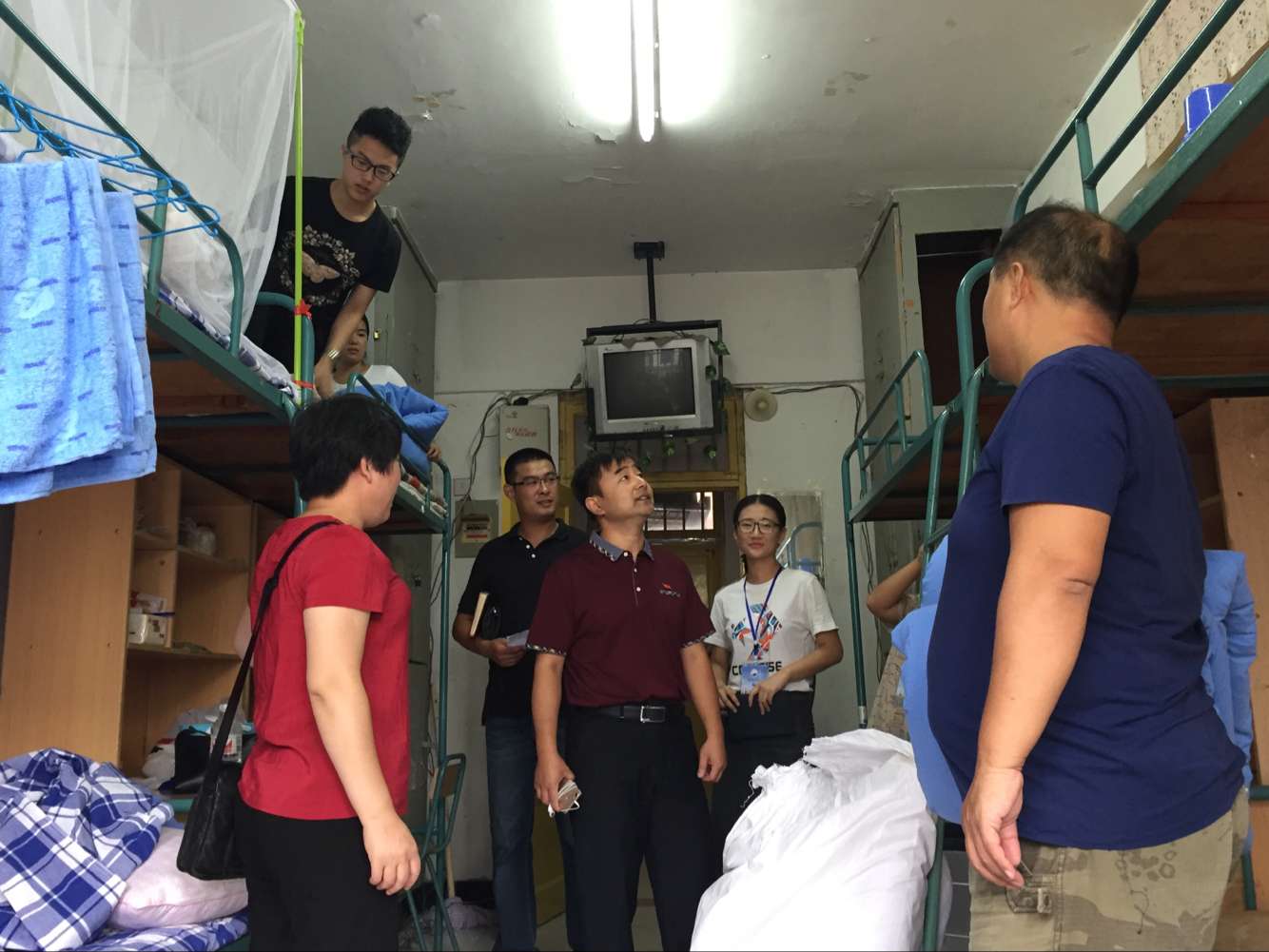 2016年9月2日上午,随着新生的报道,陆陆续续有新生入住宿舍,万搏在线党总支书记马金智老师来到新生宿舍走访,与部分新生及其家长交流沟通,询问宿舍安全等问题。团总支书记于向科老师及部分新生助导陪同。