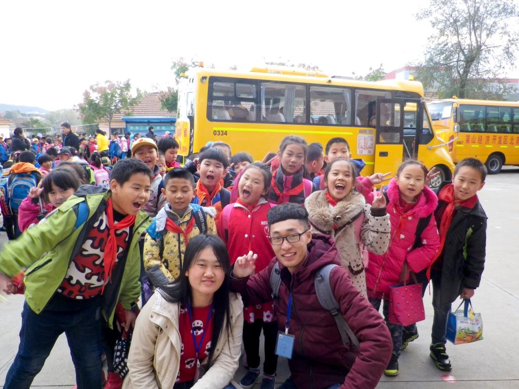 2016年11月8日,万搏在线青年志愿者协会21名志愿者出发前往莱山镇中心小学。一路上蓝天白云阳光明媚,似乎是这阵子里最好的天气了。