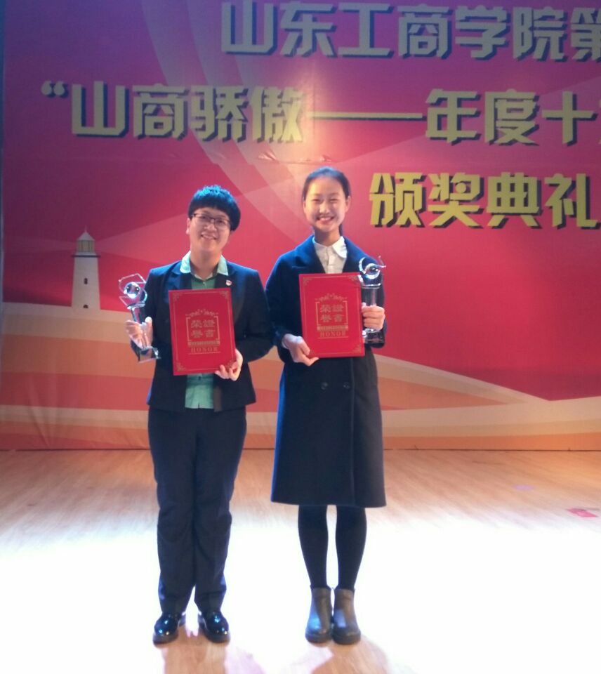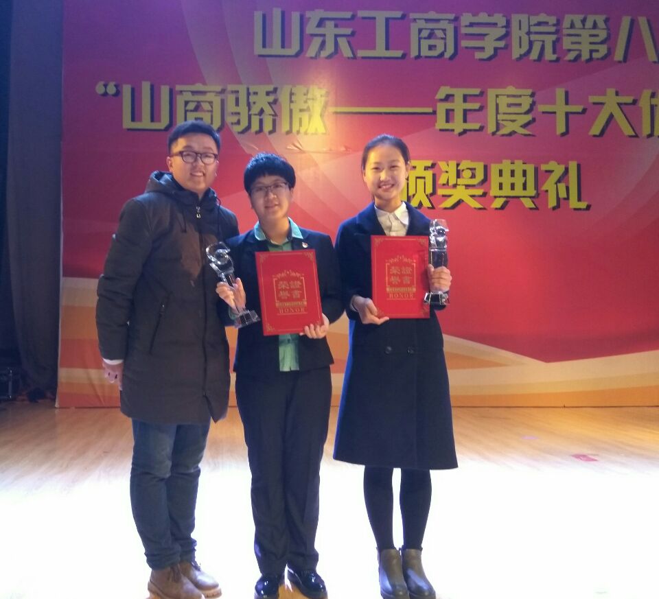 我院大二学生韩冉获“山商骄傲——年度十大优秀学子”提名奖,第十四届学生会主席吴文静获“山商骄傲——年度十大优秀学子”,她们以实际行动为我们起到了良好的榜样作用,激励我们以更饱满的热情,投入到学习和工作当中去。我们也祝愿她们再接再厉,再创佳绩。