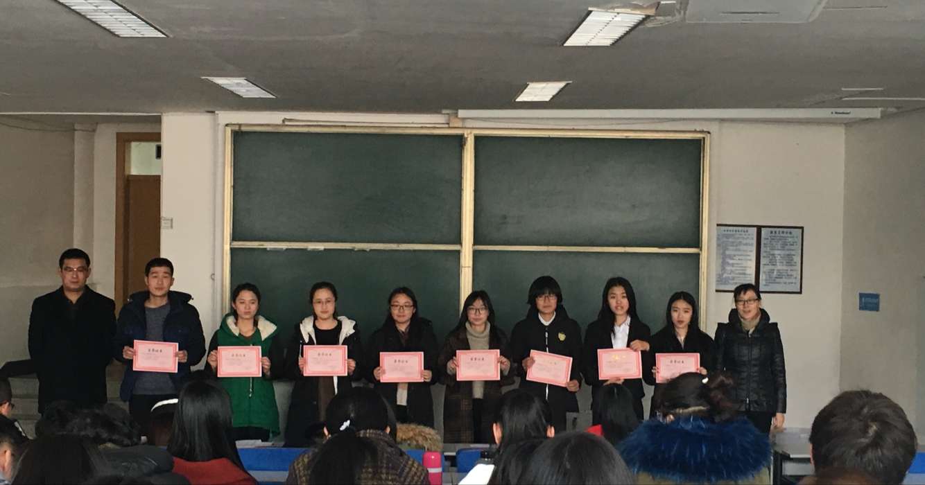 接下来由我院学生会主席吴文静做工作汇报。汇报中她着重强调了上学期学生会存在的整体问题和工作失误,她要求所有学生会成员要引以为戒,吸取经验。针对下学期的工作,她做出了详细规划,要求各部门加大创新力度,进一步实施部门内部改革,加强各部门团结协作,共同完成本学期使命。之后,我院秘书长刘海霞宣布上学期优秀部长名单。由周蕾老师、于向科老师同时为受表彰部长颁奖并合影留念。
