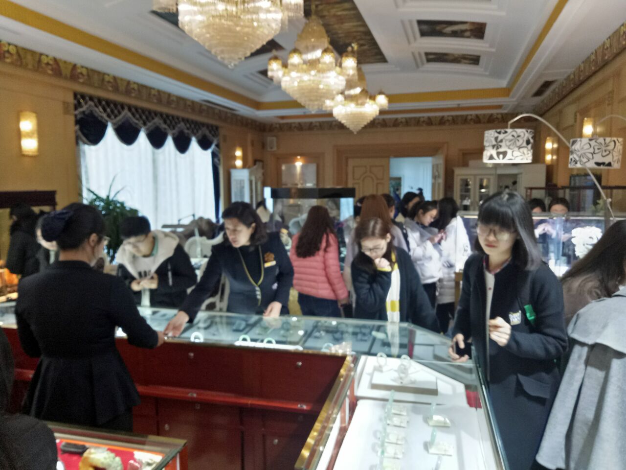 乘车来到参观地点后,大家有序进入展馆。首先由潍坊银行烟台分行的职员向大家简单的介绍产品,接着由专业人员进行进一步地详细介绍。从翡翠的形状、优劣、种类,到翡翠与一般玉石的不同之处,再到近年来翡翠价值的发展及变化。仔细的介绍使我院参观师生对翡翠有了初步的了解。接下来,老师及同学们来到翡翠展馆对各种类型的翡翠进行了近距离观察。参观期间,同学们一边参观,一边向工作人员询问。工作人员耐心地向大家讲解每种翡翠的不同之处,分辨的方法以及收藏价值。