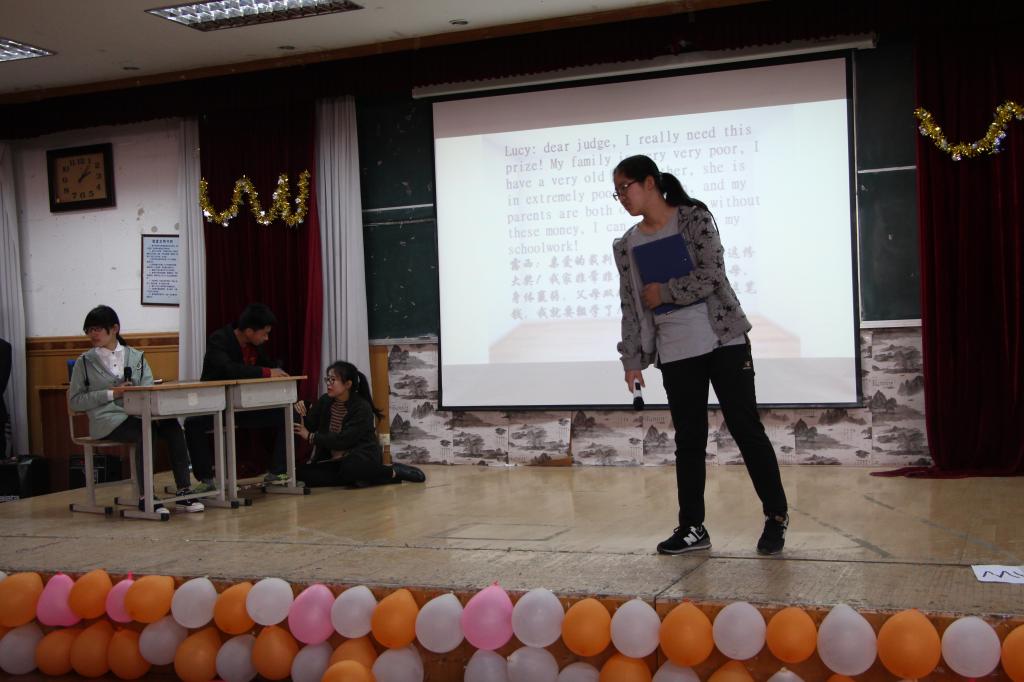随后是第三环节——团队才艺展示,各组选手纷纷登台献艺,歌唱、舞蹈、朗读、小品,形式活泼多样,在展现他们英语表达能力的同时,更表现了他们的表演能力。该环节精彩纷呈,掌声与笑声此起彼伏。