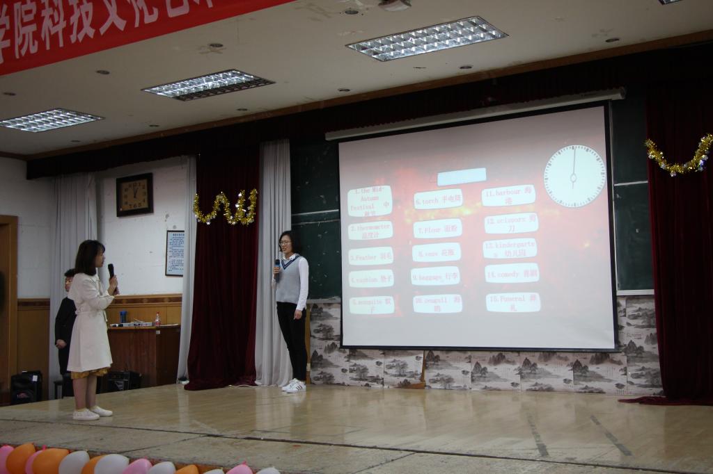 比赛由万搏在线文艺部带来的一段热舞开场,在热烈的气氛下开始了比赛的第一环节——你说我来猜。此环节每组有两位成员进行,一位表演,另一位根据表演内容猜词。表演的同学使出浑身解数,英语表达和肢体语言共用,猜词的同学开动脑筋,配合默契,整个环节气氛紧张且活跃。
