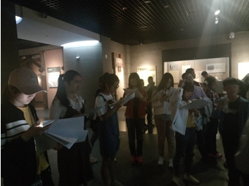 看完导游讲解之后,我们有半个小时的自由时间来自己对稿子,对每件展品的讲解词进行斟酌,并熟悉展品。这个过程中,大家异常认真,不断摸索自己的讲解风格。