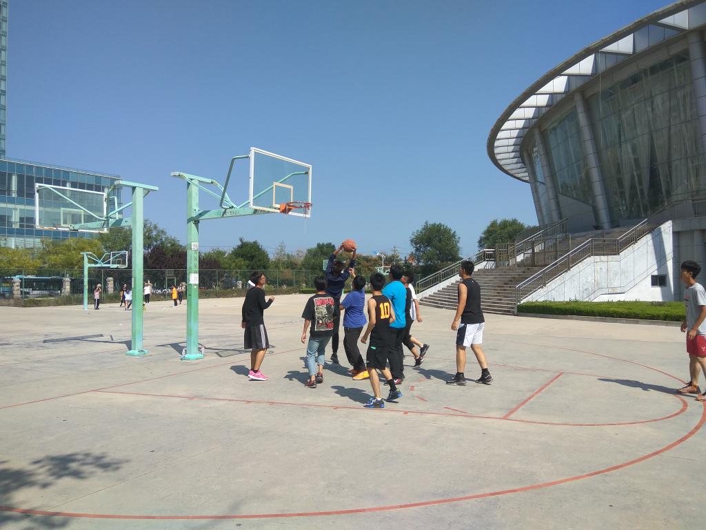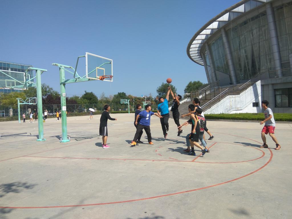 2017年9月21日中午12点,由能源经济学专业和国际贸易学专业对战的万搏在线篮球友谊赛最后一场,在体育馆西侧的篮球场举行。万搏在线学生会部分成员以及17级新生前来观看比赛,并为球员们加油打气。