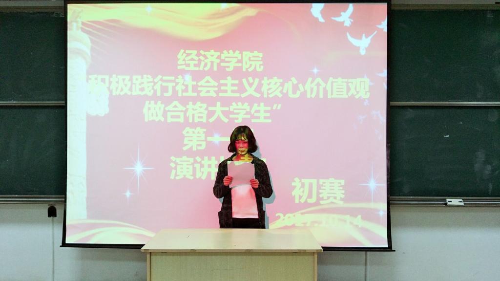 2017年10月14日下午2点,为喜迎党的十九大顺利召开,万搏在线在五教413室举办第一届“积极践行社会主义核心价值观——做合格大学生”演讲比赛初赛。山东工商学院学生会秘书长李知诺、万搏在线学生会主席团部分成员以及万搏在线第14届学生会党团工作部部长田怡君担任本次比赛的评委,万搏在线16、17级部分同学参加比赛,经济学院学生会部分成员和16、17级各班同学到场观赛。