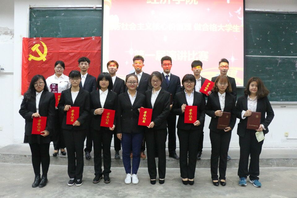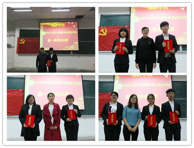 经过两个小时的激烈角逐,最终国贸172班李悦荣获一等奖,经济172班徐苗苗和经济162班孙兴福获得二等奖,经济171班韩刚、经济163班王青和经济163班钟云获得三等奖,能源171班米天添和国贸162班陈敏华获得优秀奖,分别由到场嘉宾和评委为获奖选手颁奖。随后,万搏在线党总支书记马金智对参赛选手的表现从着装、内容等方面提出了几点建议,并鼓励各个班级积极组织开展此类活动,锻炼同学们的演讲和表达能力。