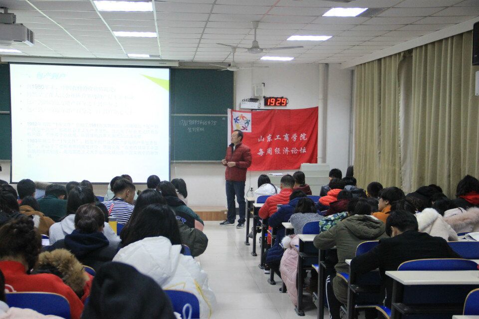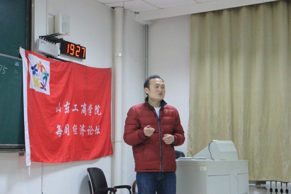 2017年11月19日晚上七点,山东工商学院第八期每周经济论坛在五教413室开展。本次论坛由万搏在线西方经济学教研室老师边志强担任主讲,16、17级部分学生参加了本次论坛。