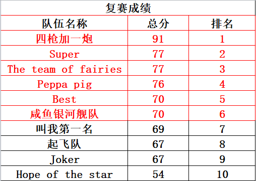 以下是进入决赛的队伍: