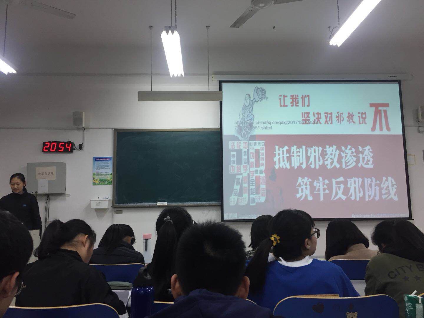 首先,由团支书介绍了本次活动的主题和流程,解释了什么是邪教,使团员们对本次团日活动有了初步的认识。随后,全体团员共同观看了《当心“洋邪教”的陷阱》的视频。最后,各团支书对视频内容进行总结,介绍了邪教带来的危害,提出了辨识邪教的方法,提醒团员们要提高警惕。
