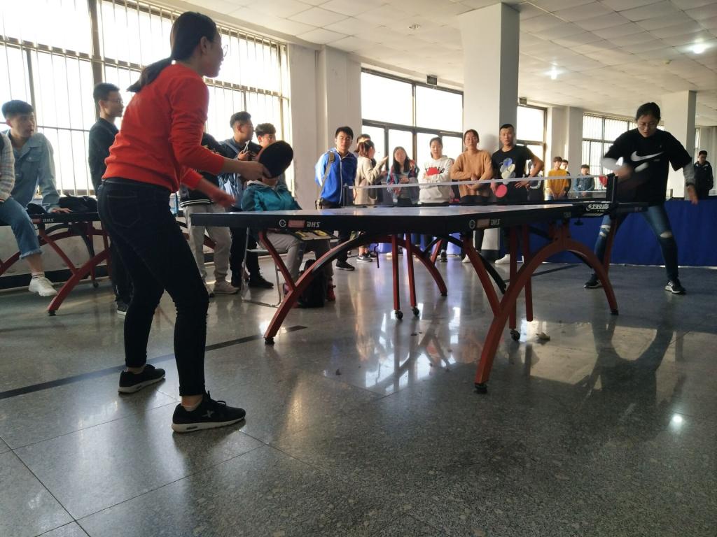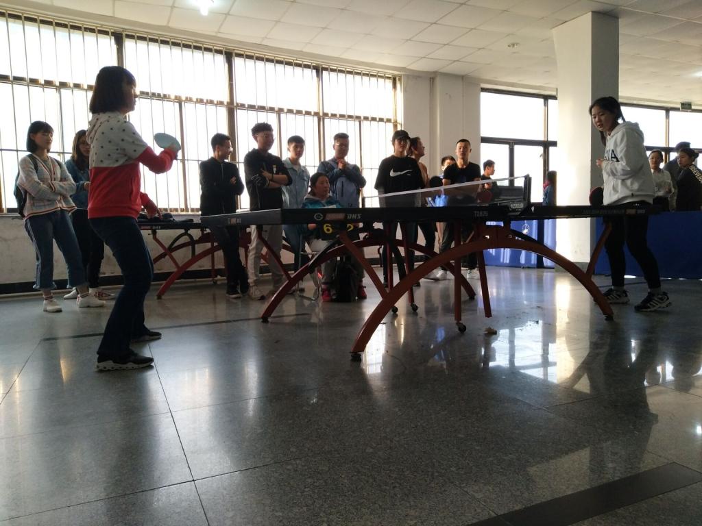 同时,乒乓球比赛也如火如荼的展开。我院男生小组赛的对手是研究生学院,女生小组赛的对手是外国语学院。比赛以单打的形式展开,在众多势均力敌的参赛选手间进行,使比赛变得精彩绝伦:直拍、横拍、扣球、旋转球都得到了一一体现,比赛时周围不断爆发一阵阵喝彩。比赛过程中,大家都挥汗如雨、积极拼搏,发挥出自己最佳状态,历经一番激战后,我院女子组以微弱的差距输给外国语学院,男子组领先研究生学院获得胜利!