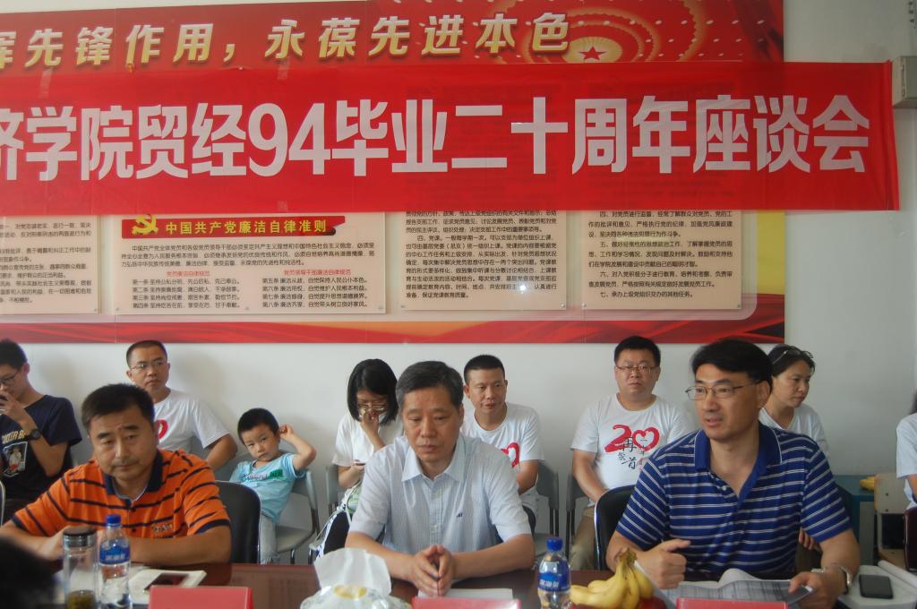 7月14日上午,贸经94级毕业生二十周年座谈会在5教312举行。万搏在线领导班子成员,党办、院办、校友联络中心副主任纪祖伟,94级辅导员卢宏伟,94级授课教师刘光彦参加了此次活动。