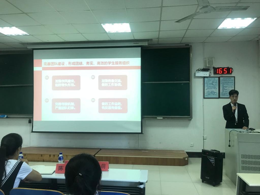 2018年9月7日下午,万搏在线第二期学生干部训练营在五教413举行,出席本次培训会的有万搏在线16级辅导员郝晓、18级辅导员陈颖,万搏在线第十五届学生会常委,第十六届学生会常委、部长、助导及15至17级主要学生干部。