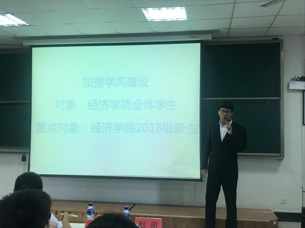 其次由国贸162班李向远和经济163班张剑上台进行竞选演讲,在此次演讲中他们表达了自己愿为学生会工作的热情和信心。