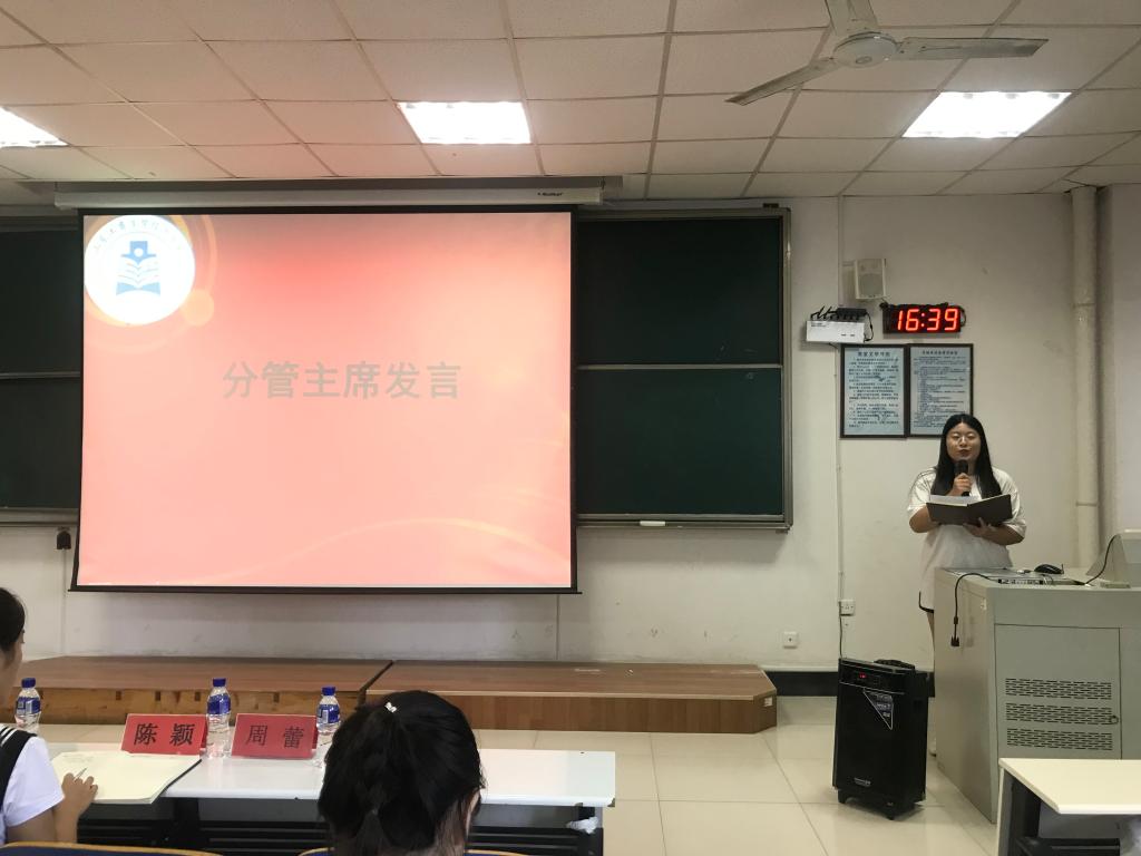 会议首先由万搏在线第十六届学生会各分管主席汇报近期工作,对迎新和军训期间的工作进行总结与反思。