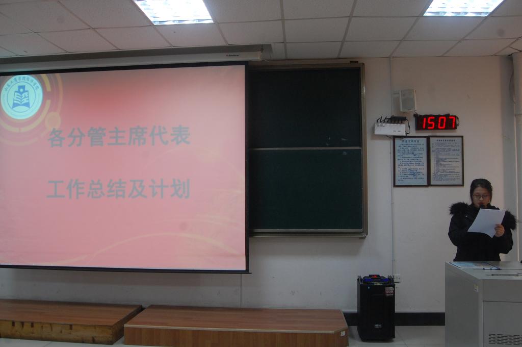 会议开始,学生会主席、常委、部长及班长团支书代表做工作总结及新学期工作计划。