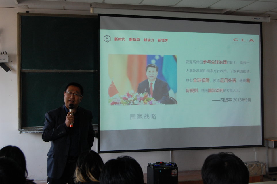 他指出英语学习主要包括口语沟通和书面沟通两方面,要突破英语学习的瓶颈,他希望同学们要抓住机遇、树立目标、克服惰性,灵活运用所学知识,提高商务沟通能力,顺势而为。