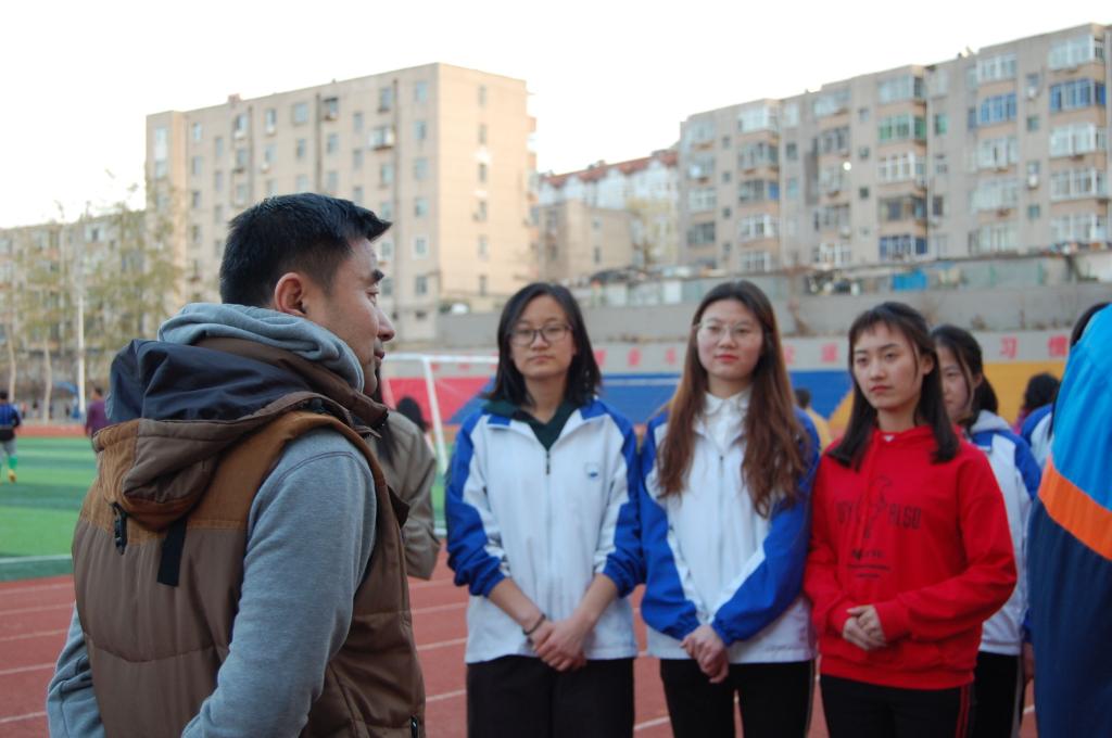 4月10日下午,万搏在线党总支书记马金智来到东操场慰问正在备战校运动会的田径队运动员。