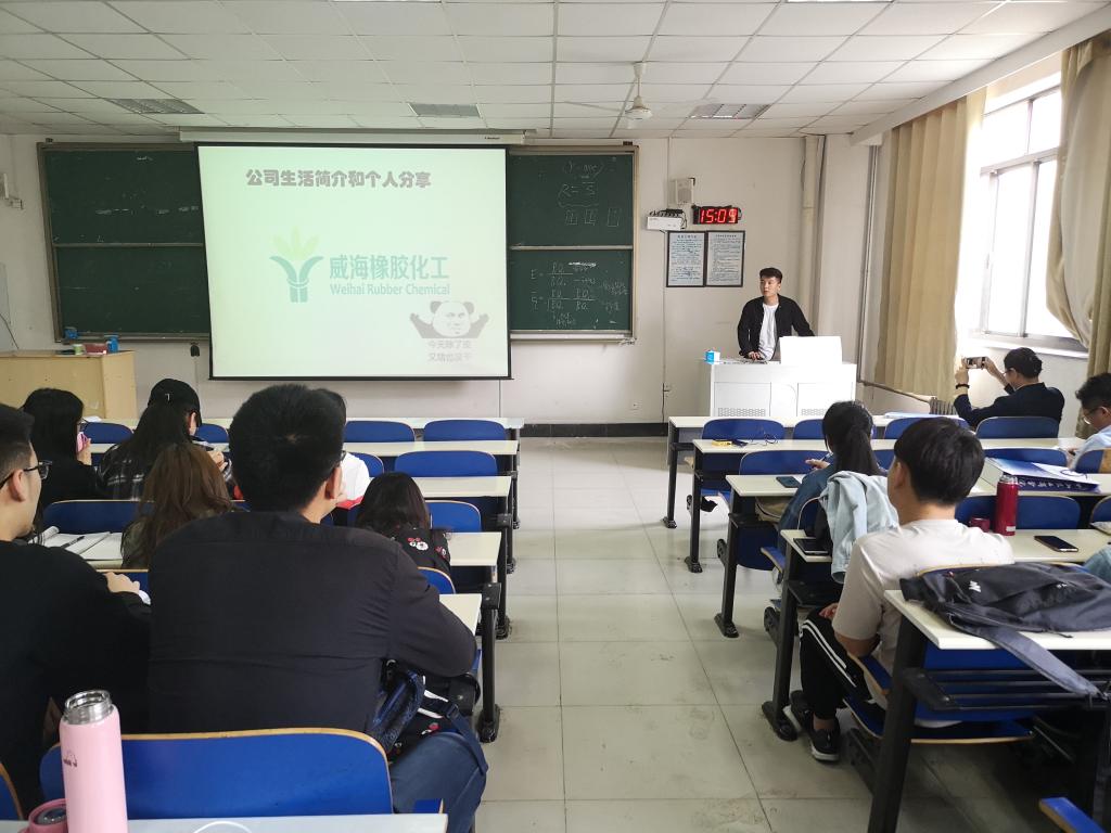 为帮助我院学生获得更丰富的实习就业经验,5月14日下午,学院邀请了威海橡胶进出口有限公司张蓝月经理及相关工作人员于五教413室开展企业招聘宣讲会,部分毕业生参加此次宣讲会。