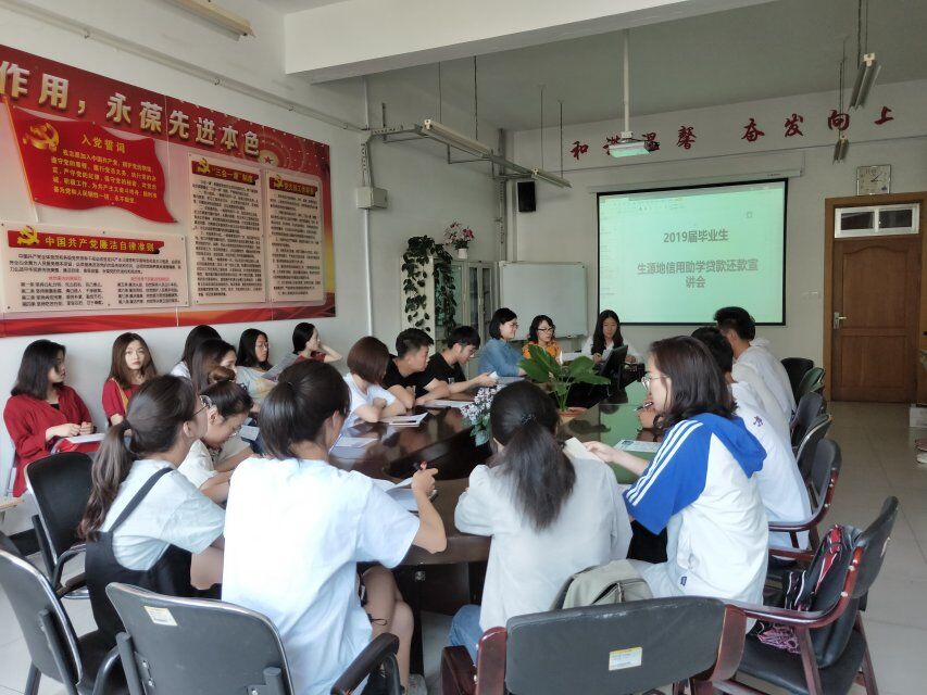 为确保19届贷款毕业生顺利完成生源地信用助学贷款确认及还款工作,5月23日下午,学院于五教312室举办2019届毕业生生源地信用助学贷款还款宣讲会。党总支副书记,17、18级辅导员以及19届申请助学贷款的毕业生参加此次宣讲会。