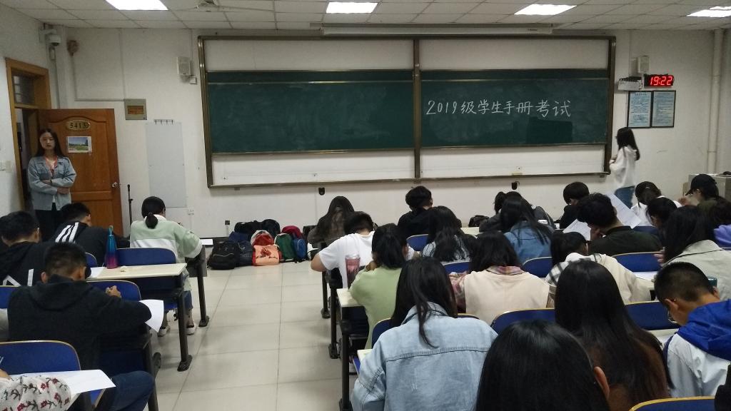 2019年10月7日晚上七点十五分,我院2019级新生学生手册考试在五教413室、505室、504室有序展开,2019级全体新生参加考试。