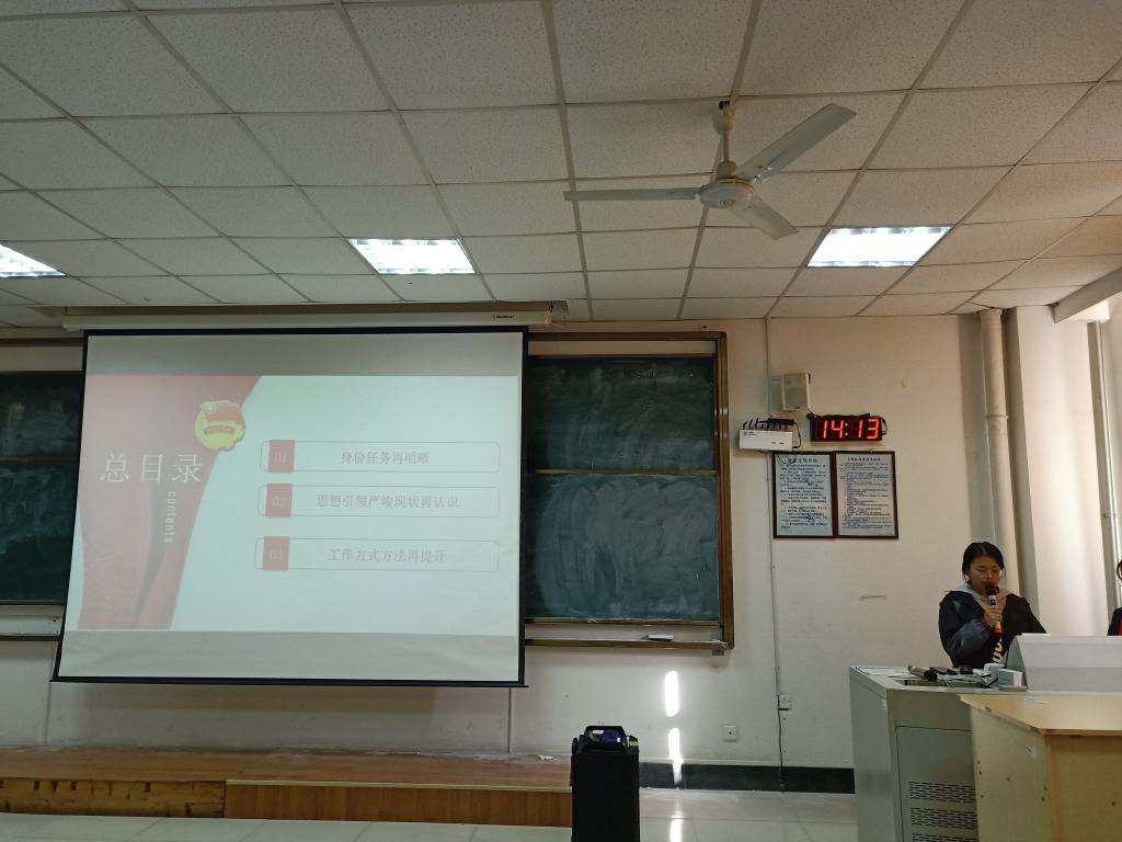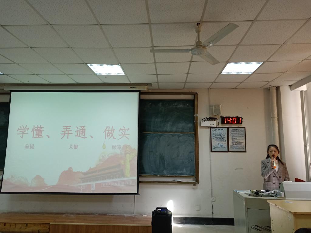 会议开始,学生会秘书长王耀琪强调“学懂、弄通、做实”是完整掌握习近平新时代中国特色社会主义思想的必备三步,她将该思想概括为核心要义四部曲来为学生干部解释其具体内容,并重点强调了创新、协调、绿色、开放、共享五大发展理念,深度讲解了该思想,加深了学生干部对该思想的理解,夯实了理论基础,最后还提出了学生干部-思政教师“精准像”:政治要强、情怀要深、思维要新、视野要广、自律要严、人格要正。接着,学生代表张薇为从准确定位及团组织的思想引领作用两方面向大家介绍了团支书这一职位,提出学生干部应提升自身能力,加强组织体系的建设。团员工作部代表王雅连介绍了团支部的工作日志并简要介绍“三会两制一课”。会议的最后,大家观看影片《习近平的治国方略》使大家进一步了解创新和环保对当今中国发展的重要作用。