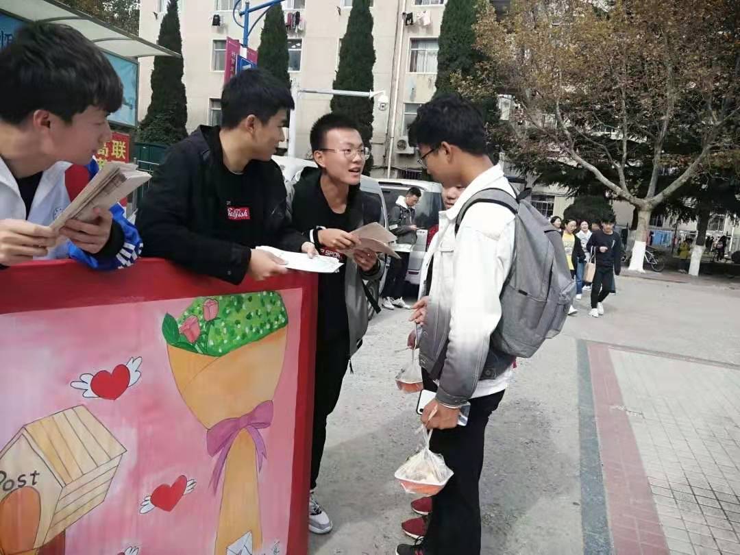 我们的志愿者于10月31日起连续两天里在二餐门口通过展板向本校学生宣传此次活动,发出信封,并且在各个教学楼门前放置信箱。在整理好信件后,志愿者们利用周末的时间奔赴各个学校将这三百一十多封信送至收信人手中。