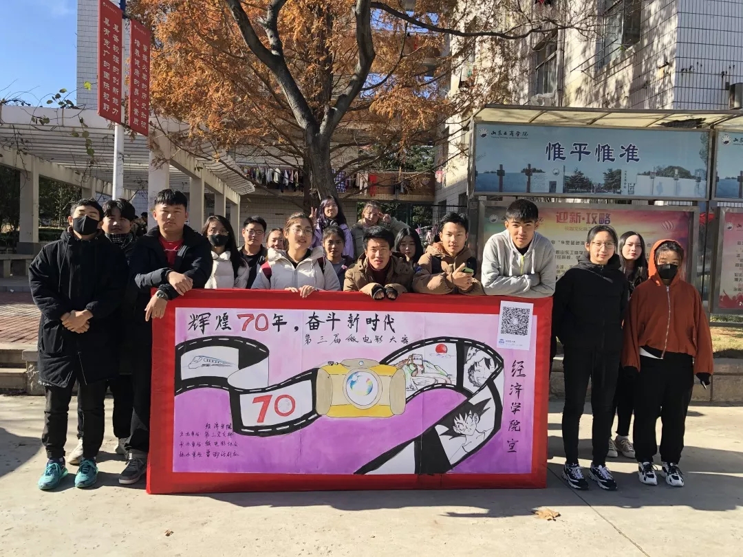 为深入贯彻学习习近平新时代中国特色社会主义思想,激发广大学生的爱国热情,弘扬民族精神和时代精神,增强民族自豪感,11月26日,由万搏在线团总支主办的“辉煌七十年,奋进新时代”主题微电影大赛宣传如期举行,并在二餐门口对本次活动进行了宣传。