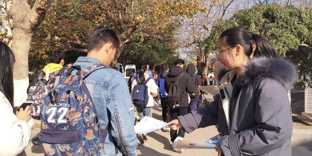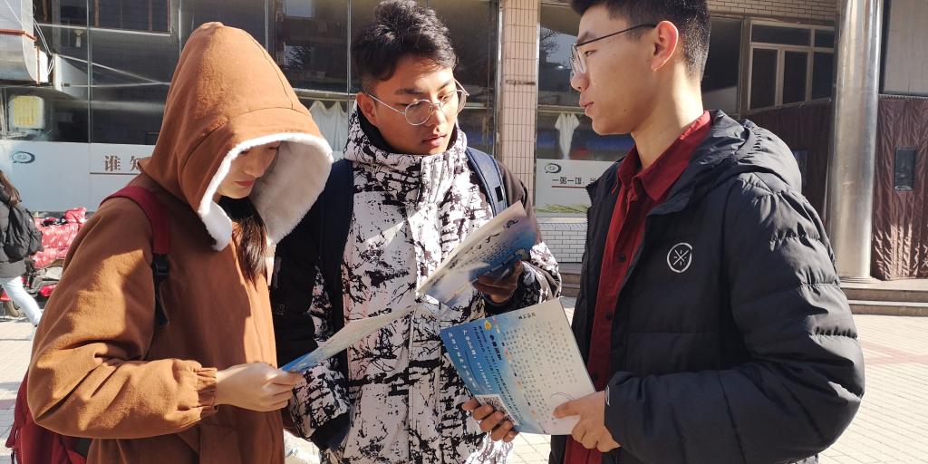 宣传现场,同学们热情高涨,对比赛持有浓厚的兴趣,凌冽的寒风也难挡同学们兴奋的心情,相关工作人员对同学们提出的问题做了详细的解答,并仔细介绍了比赛的活动流程和比赛形式,许多同学在了解相关事宜后就加入大赛群聊。在所有人的共同努力之下,接近一个小时的宣传活动圆满结束。