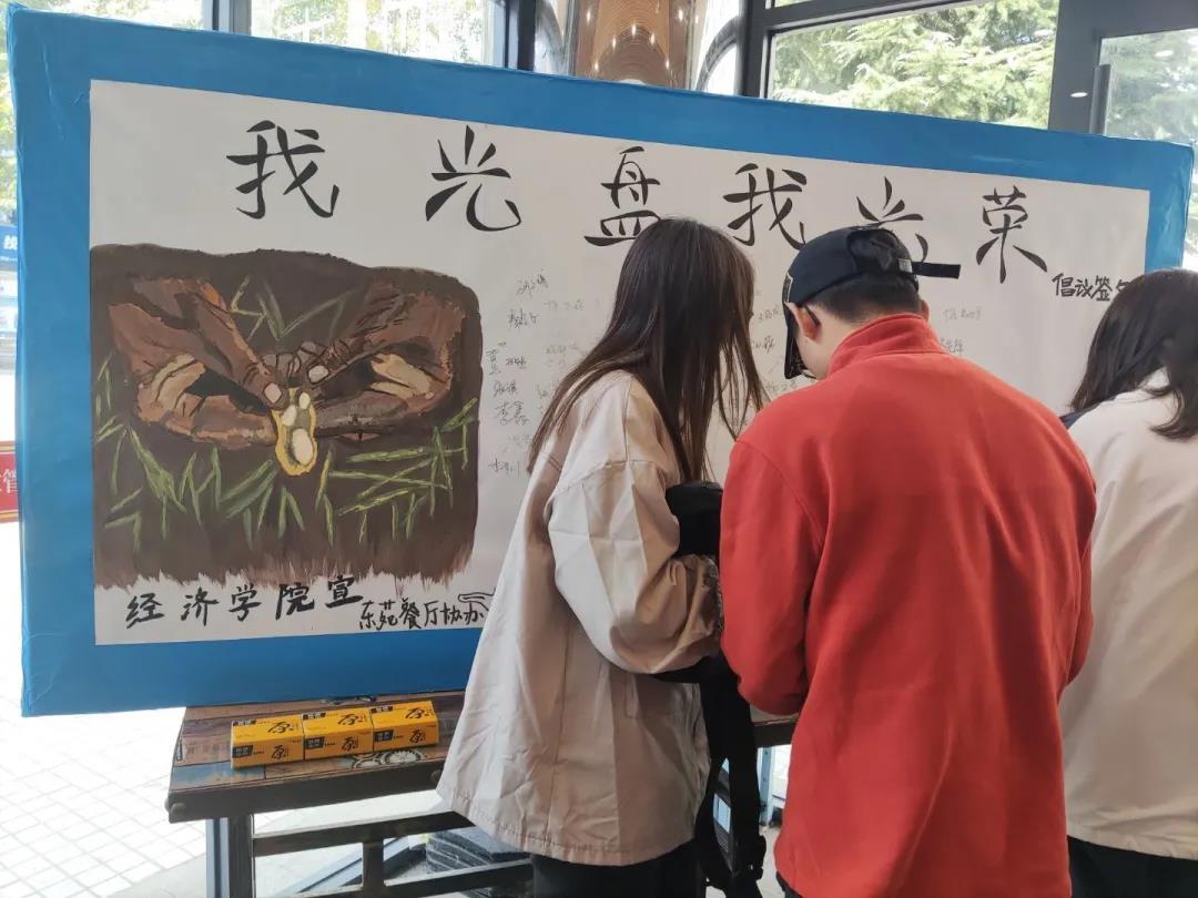 "光盘行动"倡导厉行勤俭节约,反对铺张浪费,呼吁大家吃光盘中餐,餐餐不剩饭!我院于三餐门口设立桌椅及签名板,同学们自愿加入光盘行动,拍下光盘照片,凭光盘照片参与签名活动。同学们积极响应号召,踊跃参与活动,真正做到爱粮节粮的践行者、文明就餐的倡导者、传承美德的推动者。